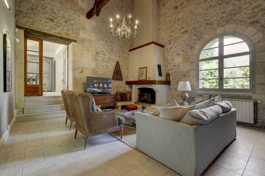 Le salon avec ses pierres apparentes, poutres en bois et carrelage traditionnel est l’endroit idéal pour se détendre. Écoutez de la musique avec les enceintes Sonos, lisez ou regardez un film sur Netflix.