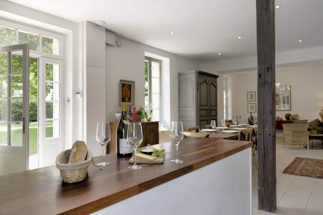 La cuisine équipée (Smeg, Miele) est parfaite pour préparer des repas conviviaux.